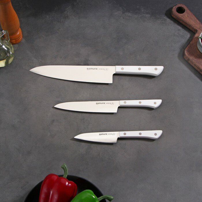 SAMURA Набор ножей Samura HARAKIRI, 3 шт: лезвие 10 см, 12 см, 20 см, белая рукоять информация: