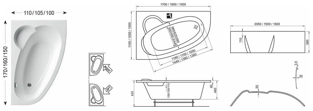 Акриловая ванна Ravak Asymmetric 170 x 110 L информация: