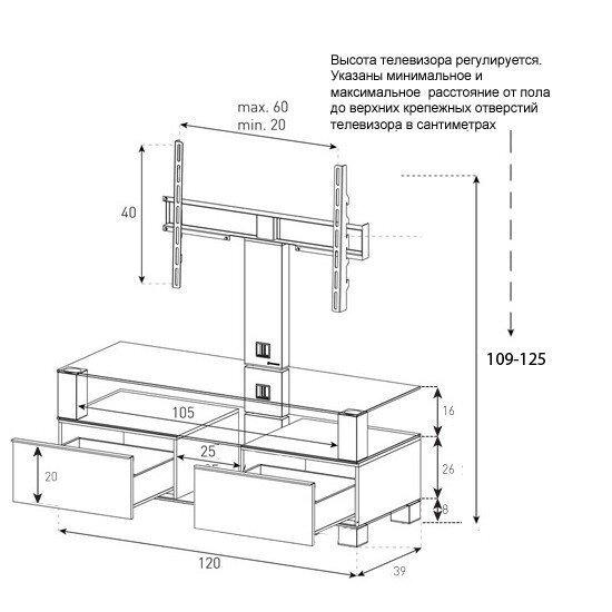 | Размер (ШxВxГ): | 120 х 125 х 39 см |