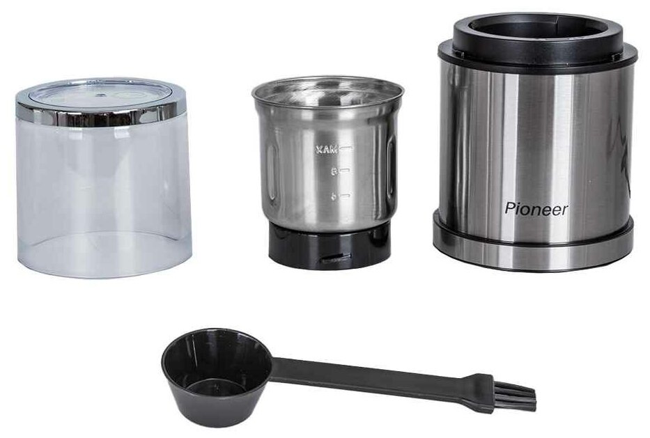 Кофемолка и мини-измельчитель Pioneer CG230 с 2 съемными чашами и корпусом из нержавеющей стали, импульсный режим, 200 Вт
