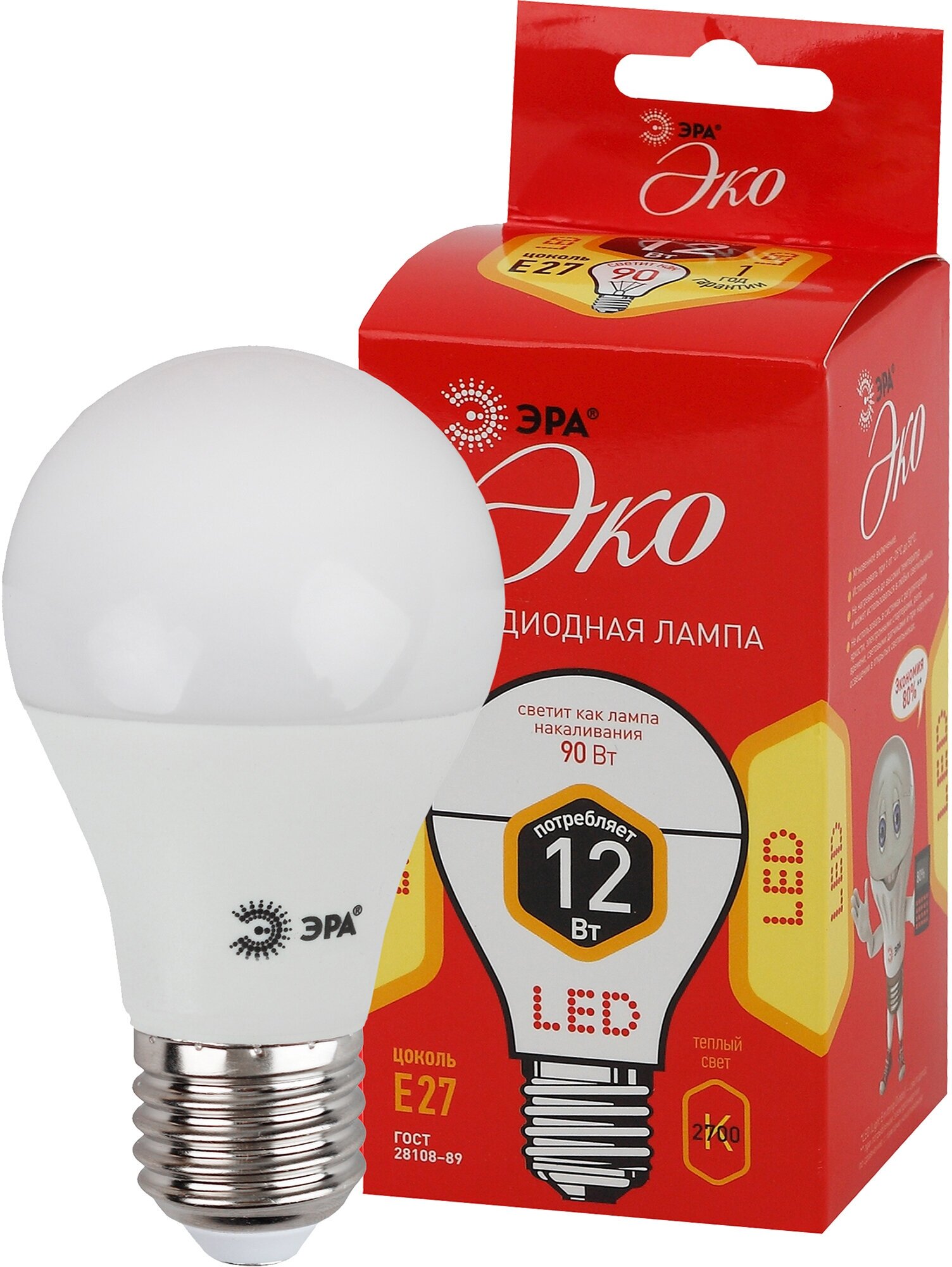 Отзывы на Лампа светодиодная ЭРА ECO LED A60-12W-827-E27 (диод, груша, 12Вт, тепл, E27)
