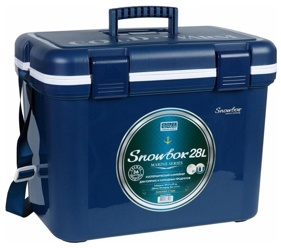 Контейнер изотермический Camping World Snowbox Marine 28L (термоизоляция корпуса и крышки, время сохранения температуры до 36 часов с применением ак/холода, наплечный ремень)