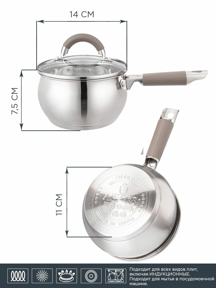 Ковш agness со стеклянной крышкой серия classic 0,9 л. 14*7,5 см KSG-937-406 1 558 ₽