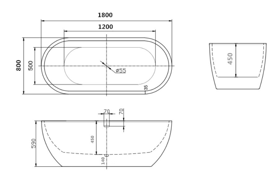 Ванна Gamma 140х70 см, акриловая, на каркасе, экран к ванне Gamma 140