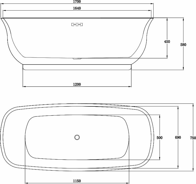 Ванна Ceruttispa COMO150 акриловая (1500x750x560) отдельностоящая, белая