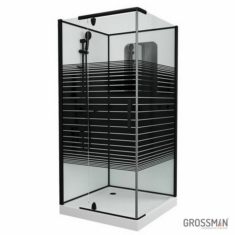Grossman (GR270QL) Душевая кабина 100х100х205 профиль черный, дверь закаленное стекло прозрачное с черными полосами 6мм