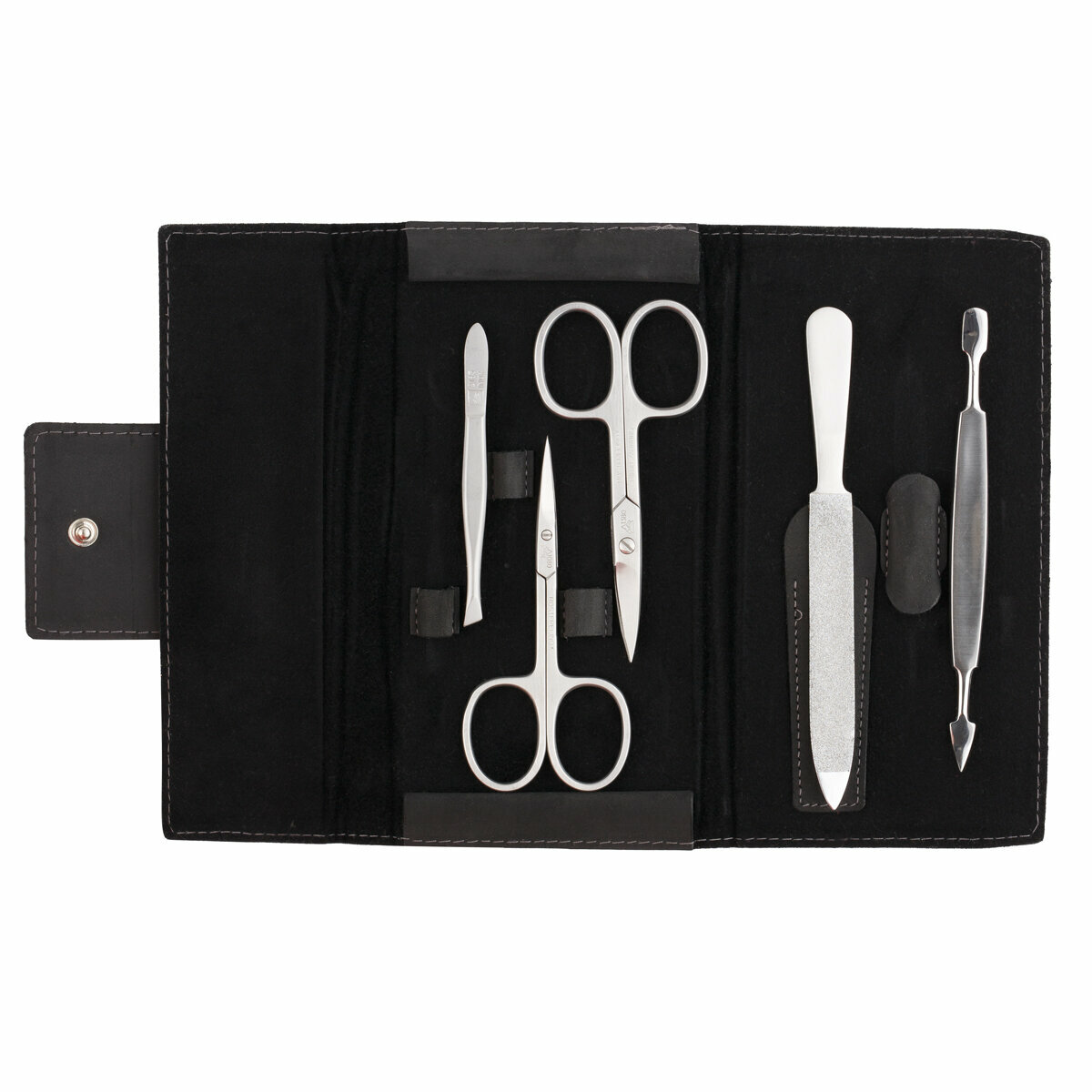 10 цен на Маникюрный набор Erbe, 5 предметов, нержавеющая сталь/сатинированное покрытие, футляр: натуральная кожа, цвет черный (9361ER)