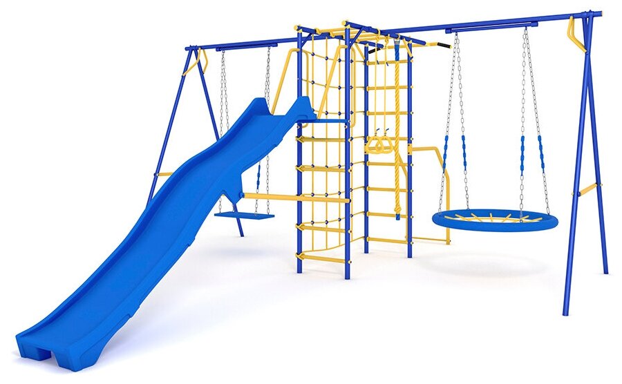 | Особенности конструкции | волнистая горка / качели "Гнездо" / широкий хват турника |