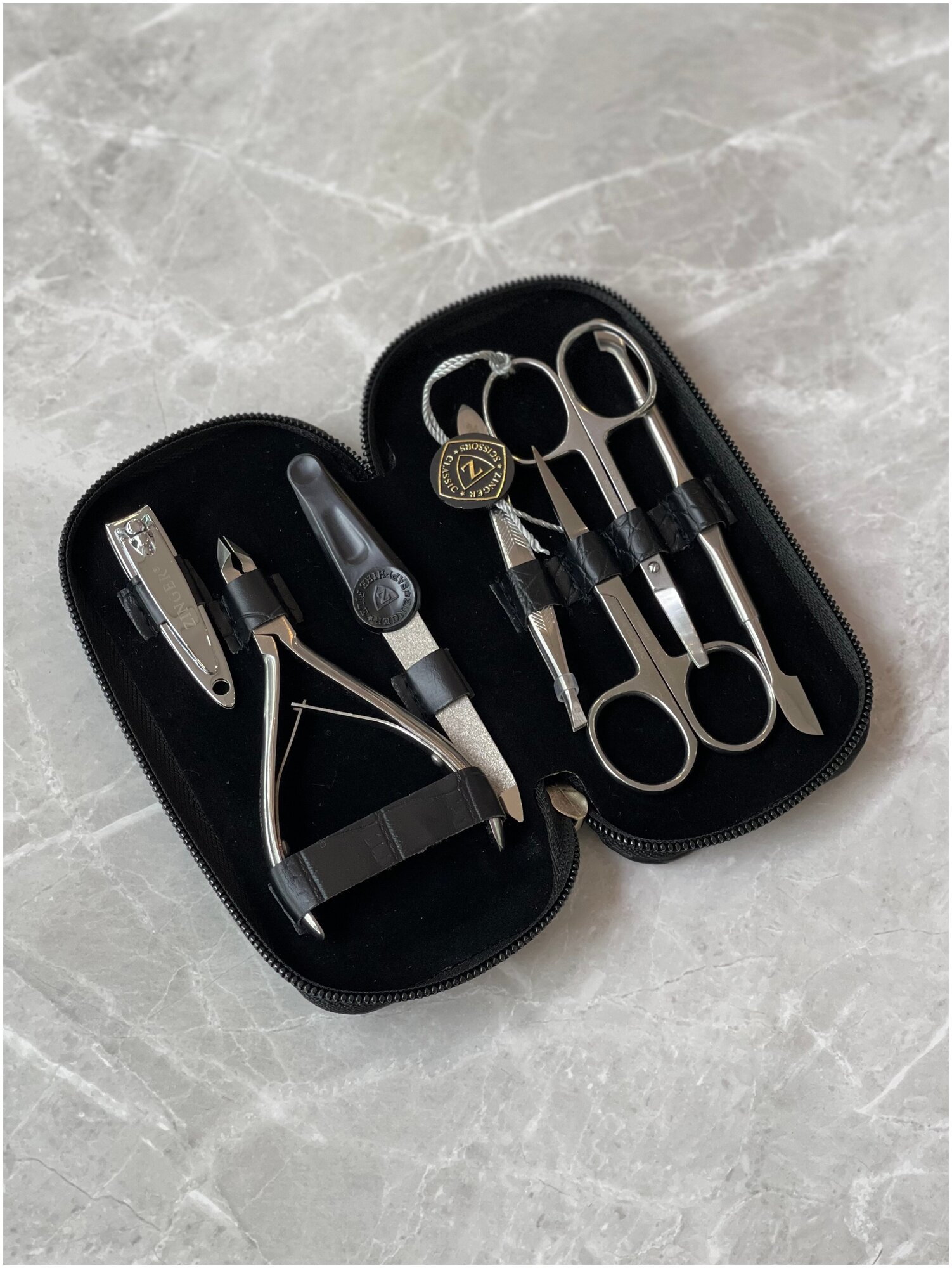 | Состав набора | ножницы, пилка, книпсер, кусачки для кутикулы, лопатка маникюрная, ножницы для ногтей, пинцет |