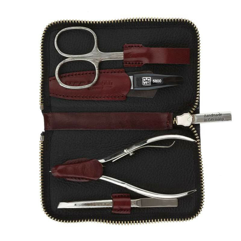Маникюрный набор YES, 4 пр. Футляр: натуральная кожа, цвет бордово-красный