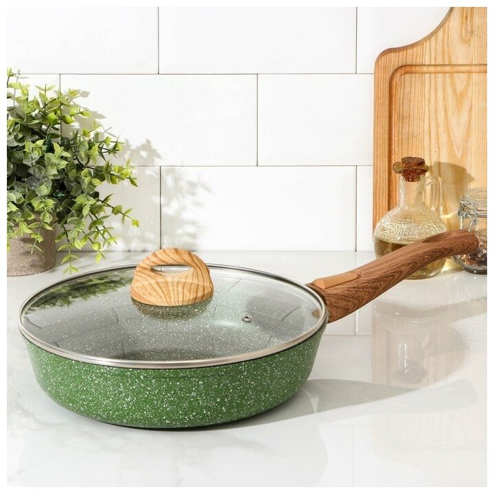 Сковорода Доляна «Форест», d=26 см, стеклянная крышка, съёмная ручка, антипригарное покрытие