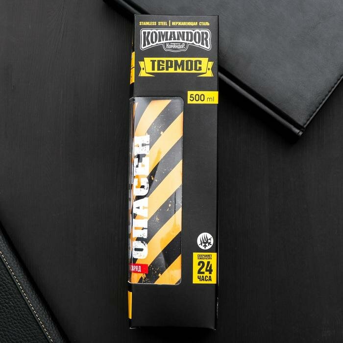 Классический термос Komandor Особо опасен, 0.5 л, желтый/серебристый/черный