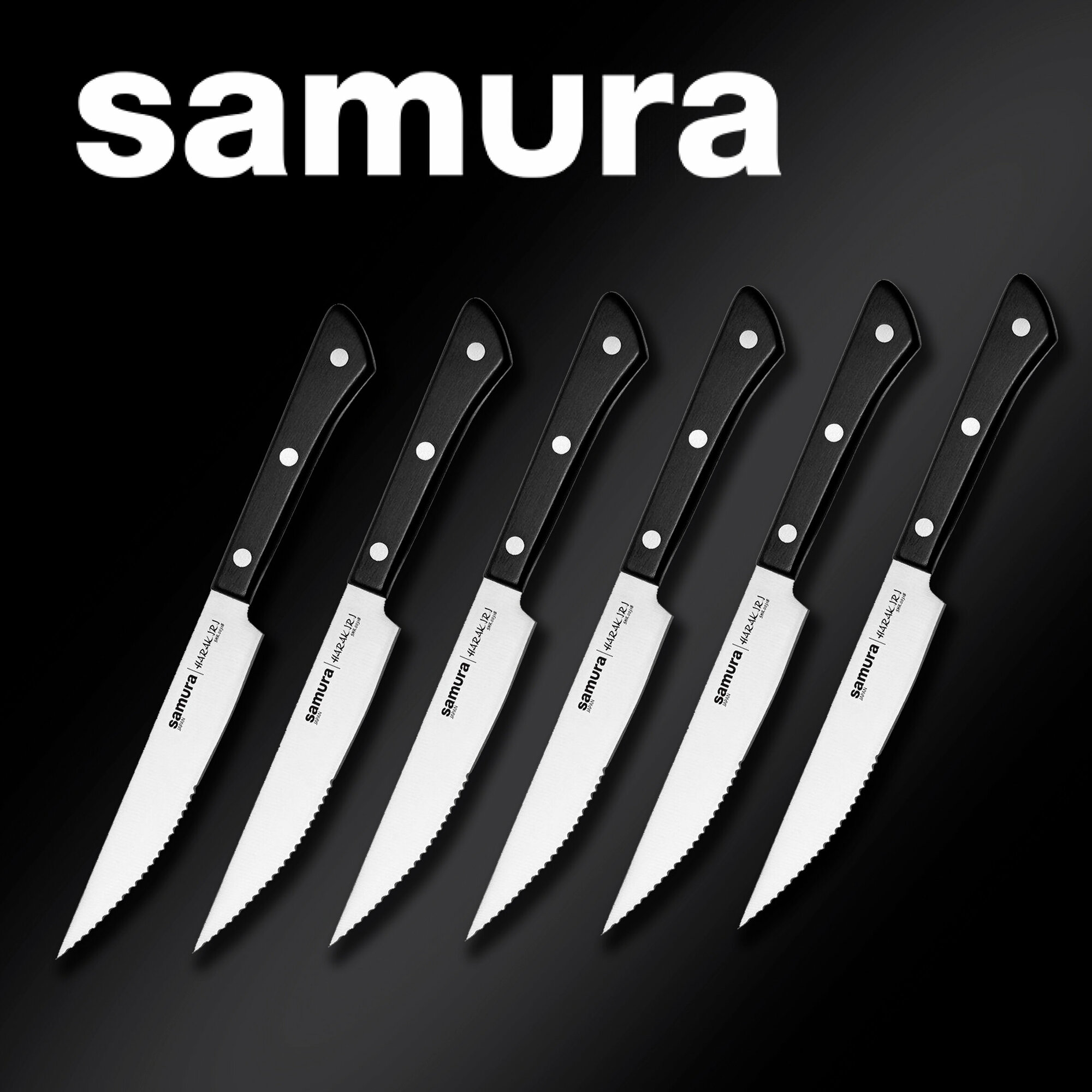 Набор ножей стейковых Samura HARAKIRI" SHR-0260B/K 12,5см, черная рукоять, 6 штук