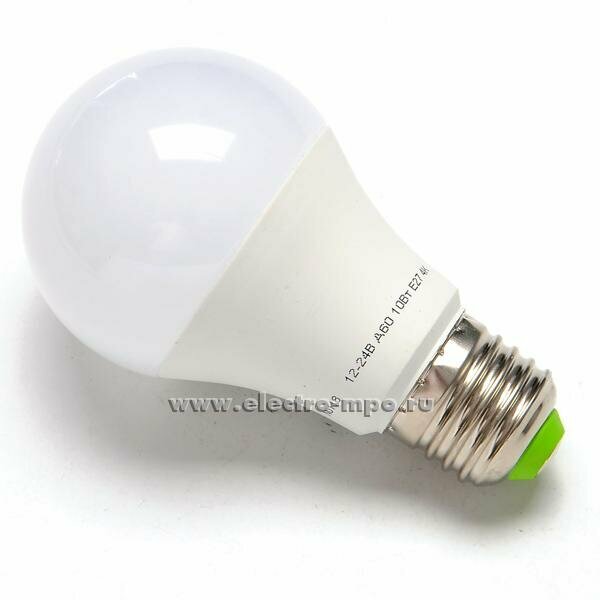 Лампа светодиодная «груша» Navigator холодный белый свет 10Вт 61476 NLL-A60-10-24/48-4K-E27 4000К 24-48В AC/DC информация: