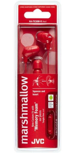 Наушники JVC HA-FX38M-R-E Marshmallow внутриканальные, проводные, встроенный микрофон, ПДУ, красные