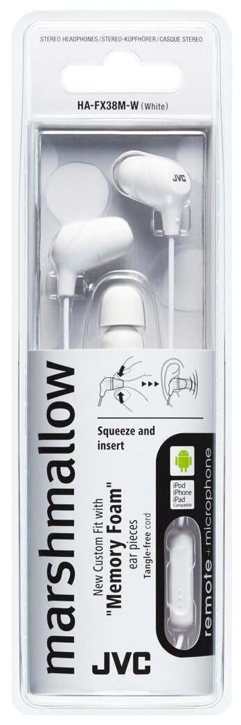 10 цен на Наушники JVC HA-FX38M-W-E Marshmallow внутриканальные, проводные, встроенный микрофон, ПДУ, белые