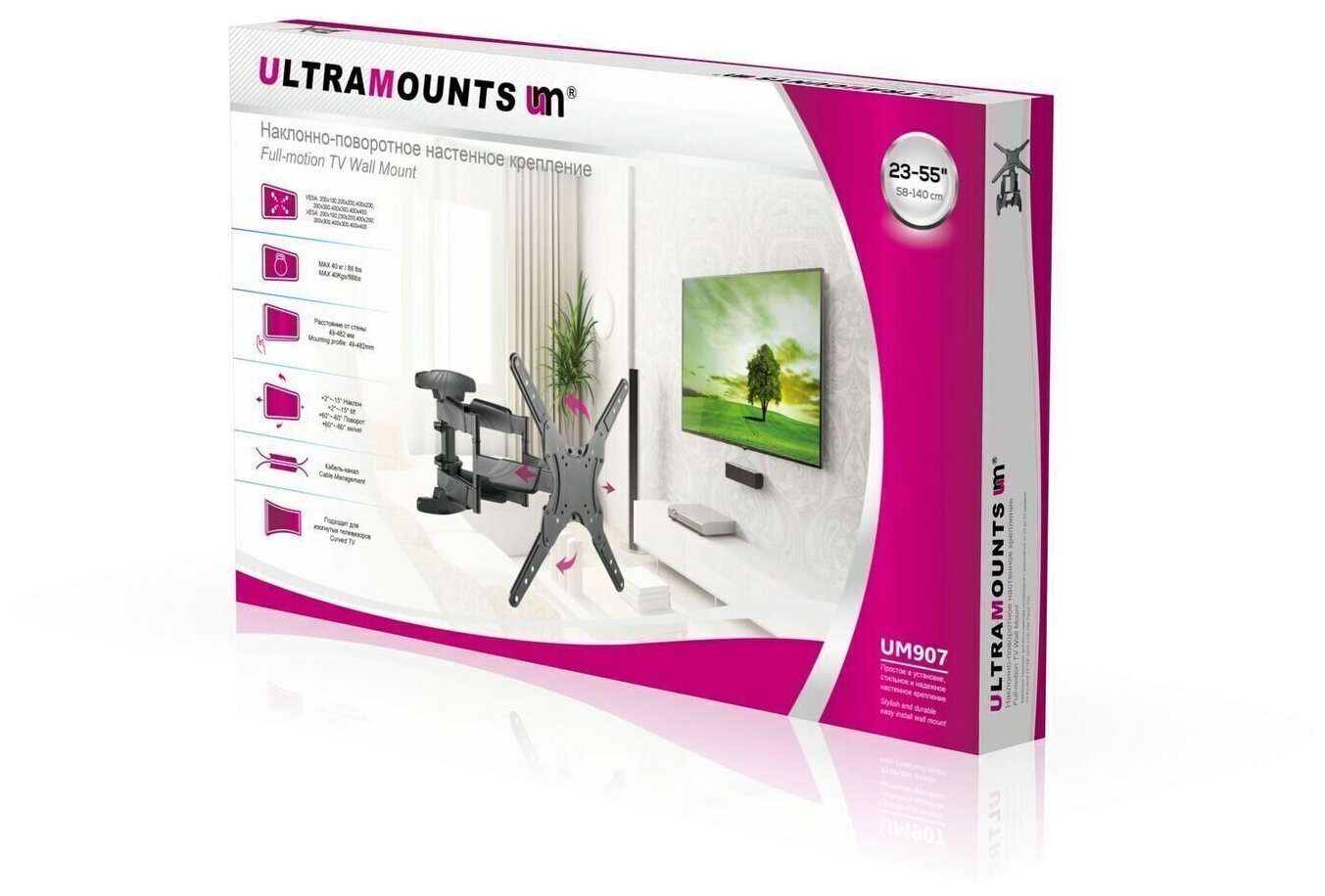 Кронштейн для телевизора наклонно-поворотный Ultramounts UM907 23"-55" информация: