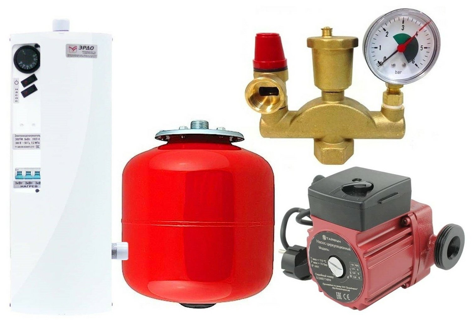 Комплект 6 кВт электрокотел эрдо ЭВПМ NEXT-SILENT, насос, бак, группа безопасности информация: