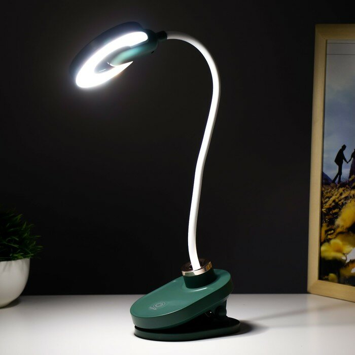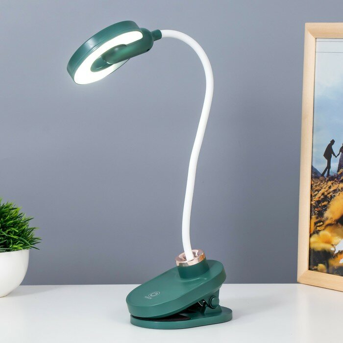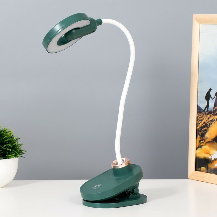 10 цен на RISALUX Настольная лампа на прищепке "Блум" LED 3Вт АКБ USB зеленый 8х12х42,5 см