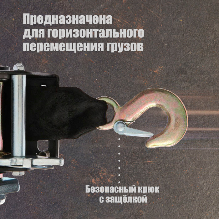 10 цен на Лебедка ручная барабанная тяговая тундра, 800 кг, трос-ремень 6 метров