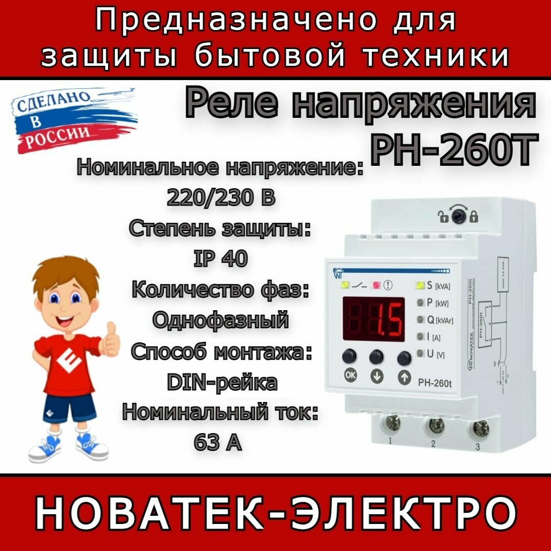 Реле напряжения РН-260т НовАтек-Электро 3425600260т, новатек-электро 3425600260Т (1 шт.)