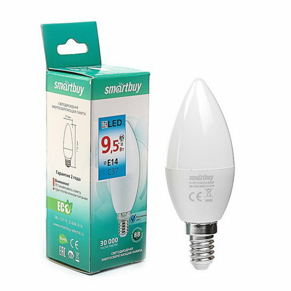 Отзывы на Лампа светодиодная Е14, C37, 9.5 Вт, 6000 К, холодный белый свет