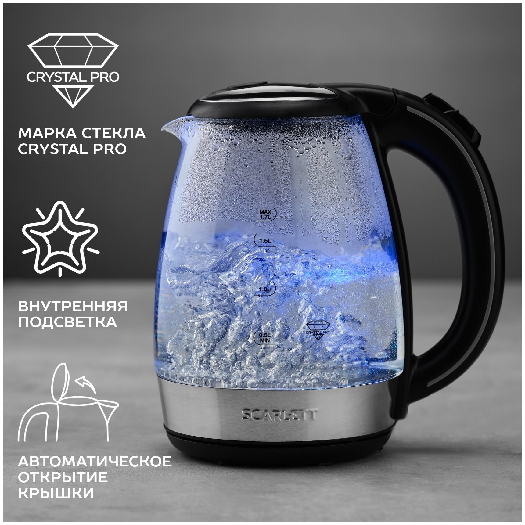 Чайник электрический Scarlett 1,7 л, 2200 Вт, с подсветкой, стекло, пластик (SC-EK27G93)