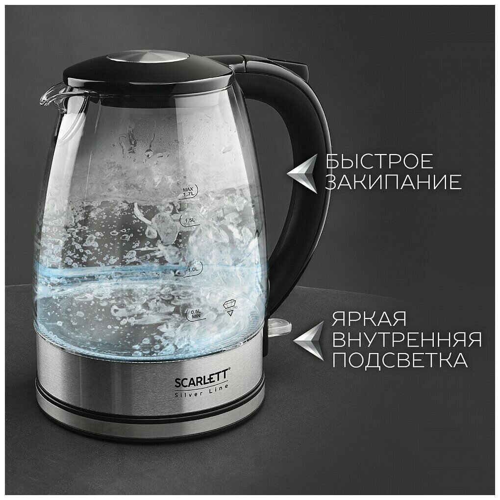 Чайник электрический Scarlett SC-EK27G95 1.7л. 2200Вт серебристый/черный (корпус: стекло) SC-EK27G95