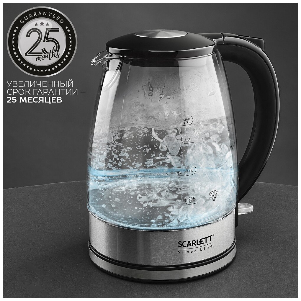 Чайник электрический Scarlett SC-EK27G95 1.7л. 2200Вт серебристый/черный (корпус: стекло) SC-EK27G95