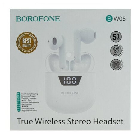 10 цен на Bluetooth наушники вкладыши с микрофоном Borofone BW05 TWS White, беспроводная гарнтитура, белая