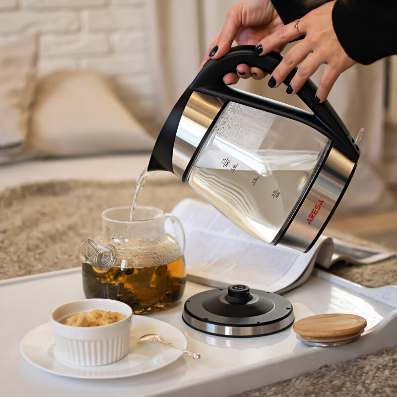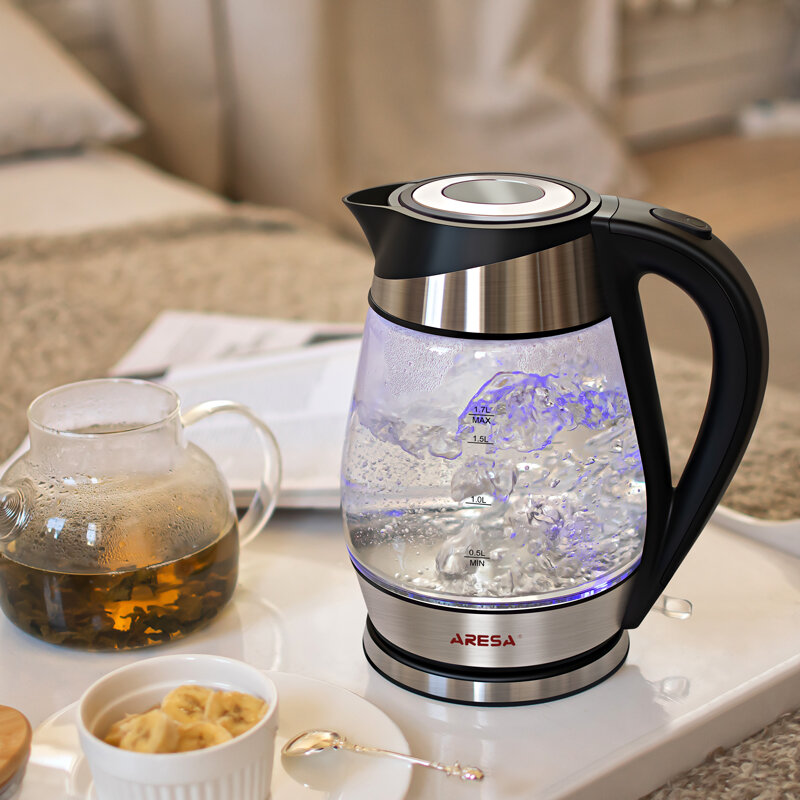 Чайник электрический ARESA AR-3441, 1,7 л., стеклянная колба, серебристый, черный