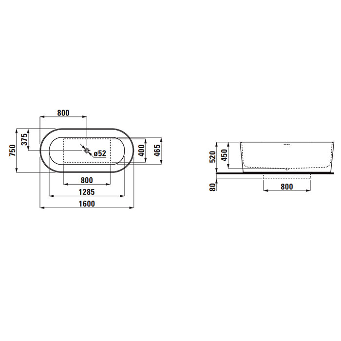 Ванна Ceruttispa COMO150 акриловая (1500x750x560) отдельностоящая, белая
