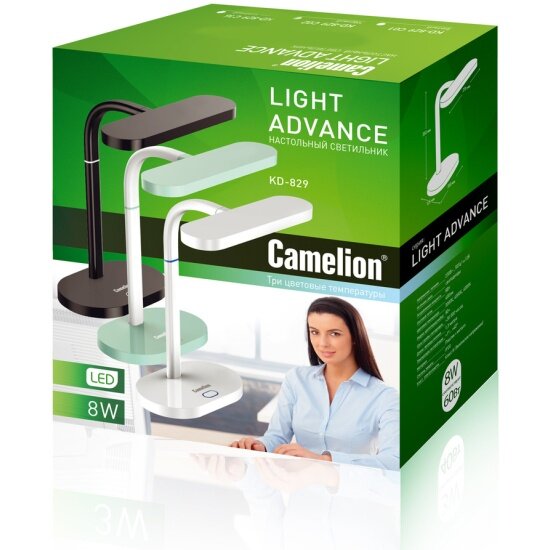 Настольная лампа CAMELION LED KD-829 C01 белый, 8Вт, регулировка яркости, 3 цвет темп) информация: