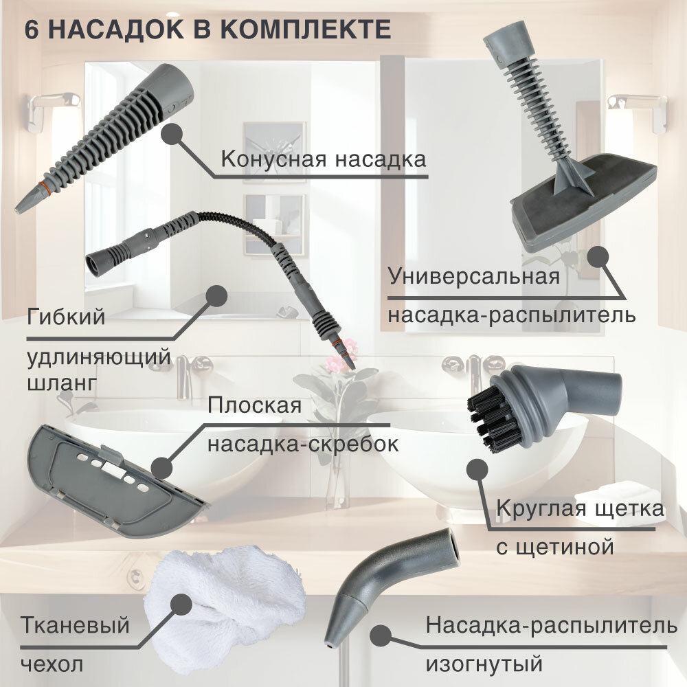 Пароочиститель VLK Sorento 4900, 900 Вт, 450 мл, 6 насадок, 3.5 бар, 28 г/мин, шнур 2 м