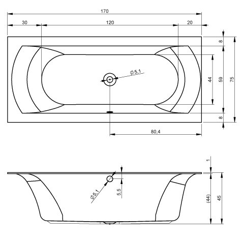 Ванна акриловая RIHO LINARES RIGHT 170x75 BT4400500000000