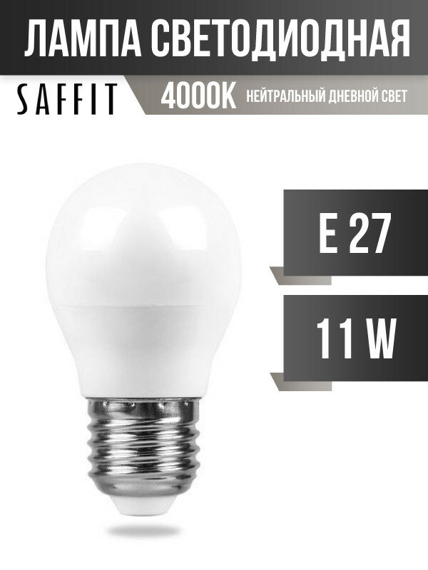 Saffit шар G45 E27 11W(905lm) 4000K 4K матовая, пластик 80x45 SBG4511 55139 (арт. 715795) информация: