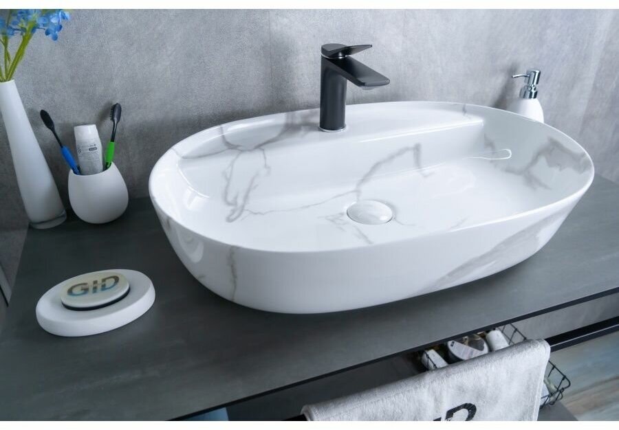 Раковина накладная GID Mnc346C 61 под мрамор/белая глянцевая 15 000 ₽
