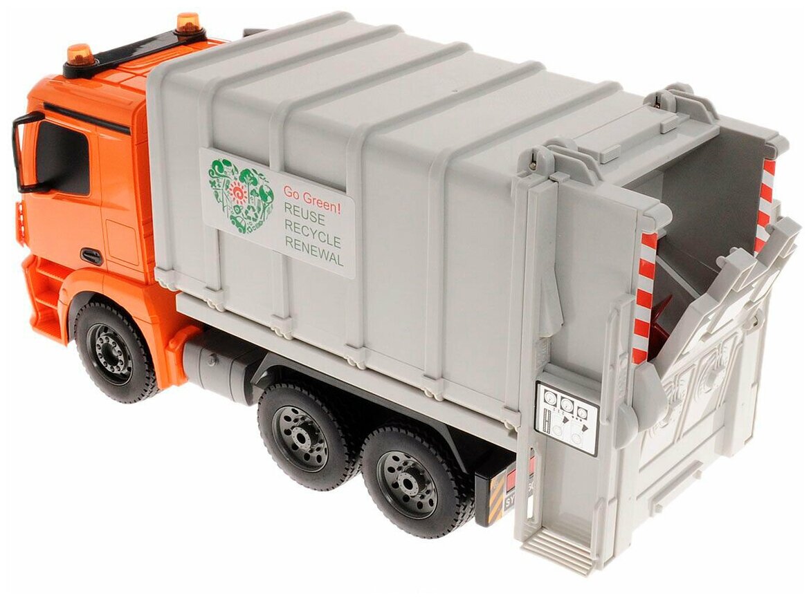Мусоровоз Double Eagle Mercedes-Benz Antos (E560-003), 1:20, 41 см, оранжевый/белый информация: