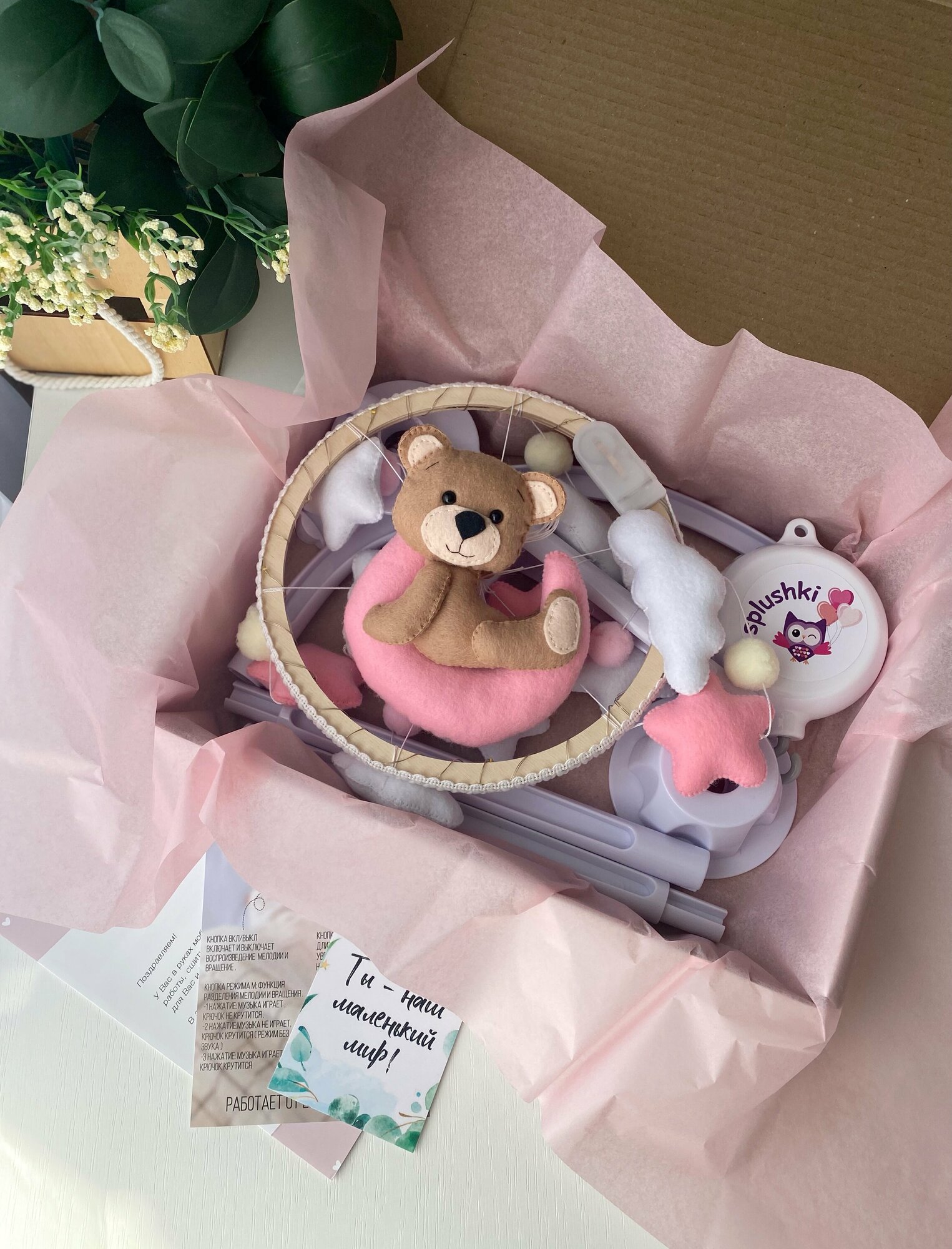 Мобиль музыкальный для детской кроватки Сплюшки Мобили "Мишка с розовыми звездами" информация: