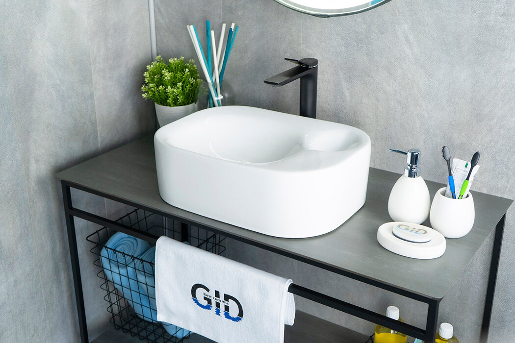 Отзывы на Керамическая накладная раковина с встроенным переливом Gid N9266 с сифоном ORIO A3202