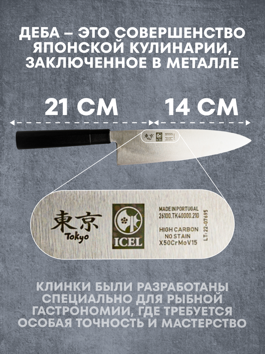 Нож японский Деба 210-350 мм. черный, для левши TOKYO Icel информация: