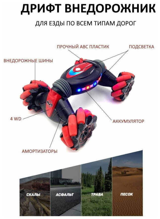 10 цен на Машинка-перевертыш для дрифта Double Sided Stunt Car, управление жестами, красная
