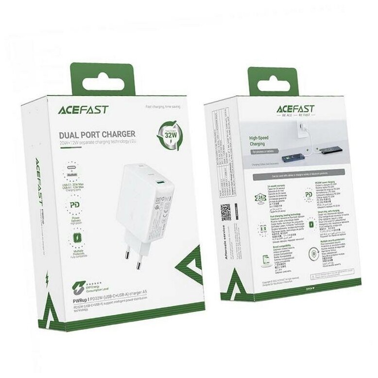 Зарядное устройство ACEFAST A5 PD32W, 1xUSB-A, 1xUSB-C, белый