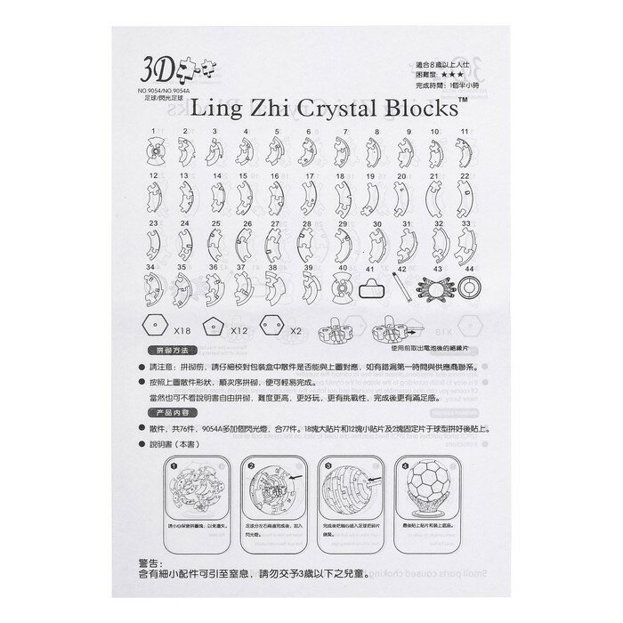 Пазл 3D кристаллический Мяч, 77 деталей, световые эффекты, работает от батареек, микс. В упаковке: 1 информация: