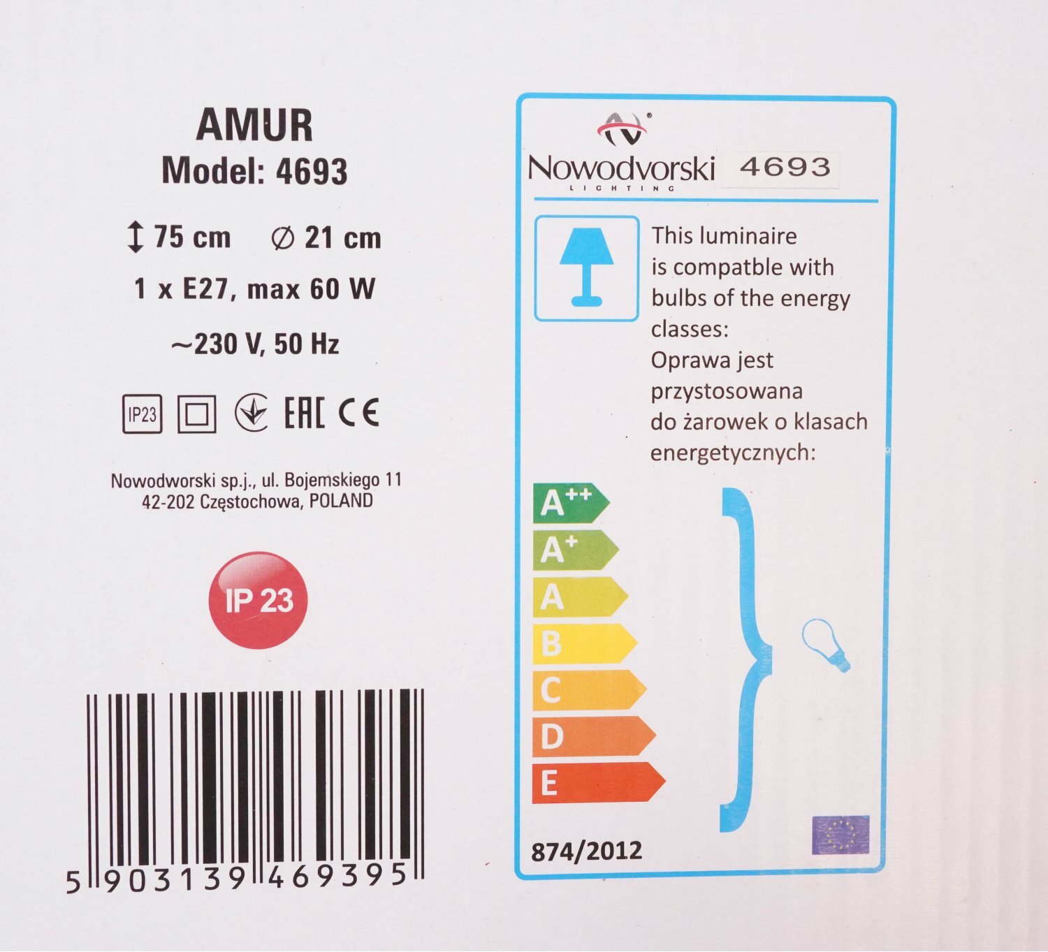 Уличный подвесной светильник Nowodvorski AMUR I 4693 информация: