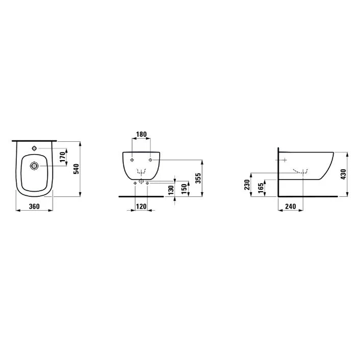 Биде Laufen Palomba collection 36х26,5см, арт. 8.3080.1.000.304.1, подвесное, без крышки, с 1отверстием для смесителя 57 773 ₽