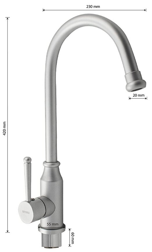Смеситель кухонный BRIMIX, боковой - матовый из алюминия, арт, 87208 информация: