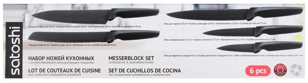 | Типы ножей в наборе | нож для овощей, универсальный нож, нож для хлеба, шеф-нож, для нарезки |