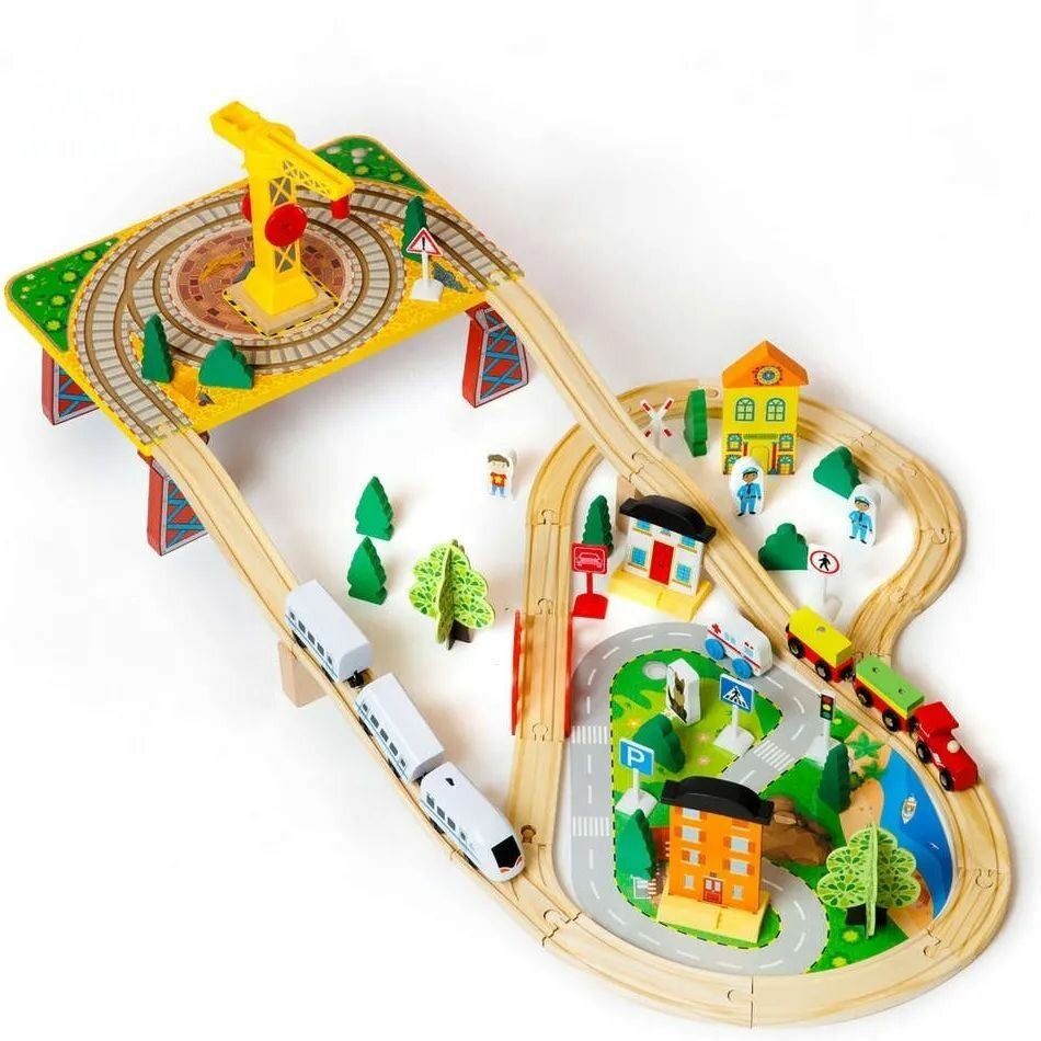 Деревянная железная дорога с электропоездом 78 деталей Трек с поездом/ информация: