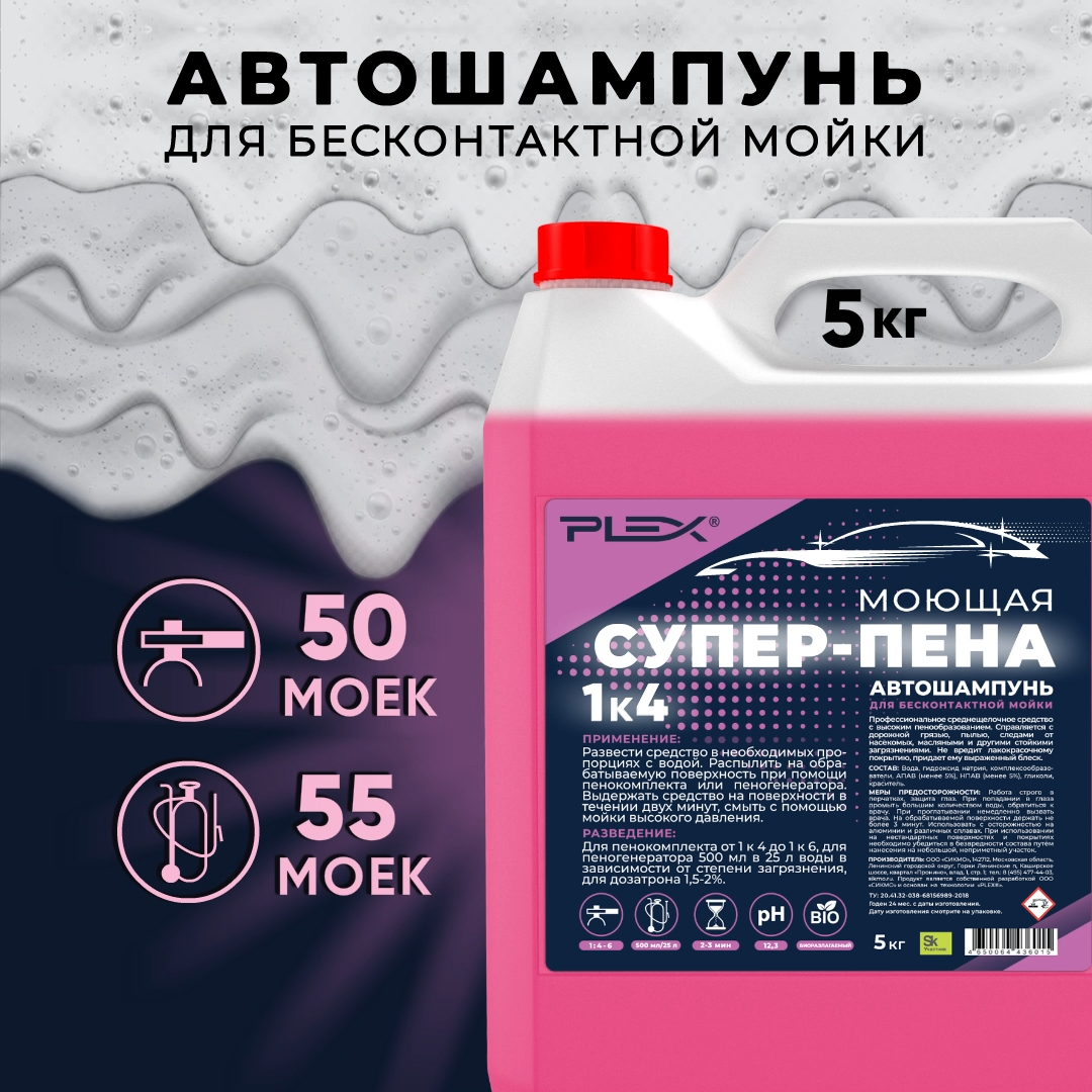 Супер-пена моющая PLEX 5кг информация: